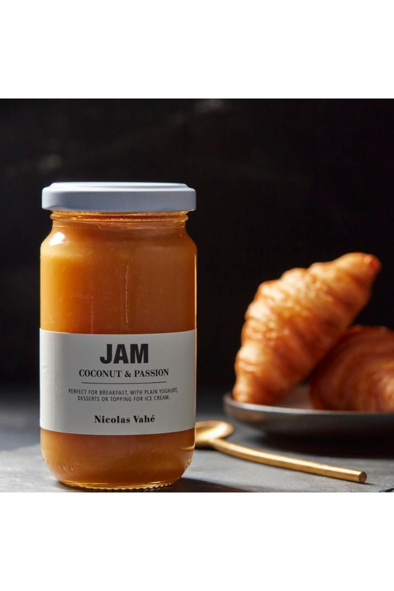 Syltetøy med smak av kokos og pasjonsfrukt fra Nicolas Vahe. Passer bra til frokost, dessert eller på iskremen.