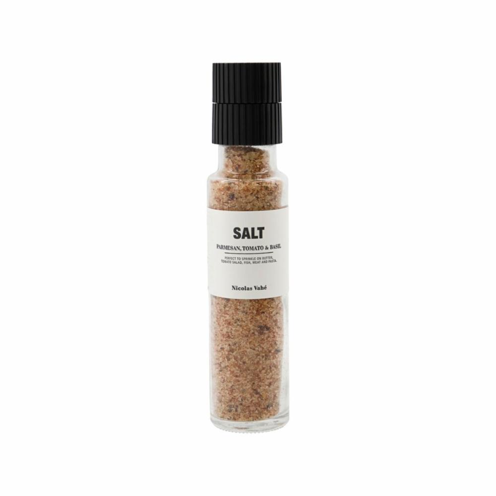 Slt med parmesan, tomat og basilikum fra Nicolas Vahe. Perfekt til dryss på smør, tomatsalat, fisk, kjøtt og pasta.