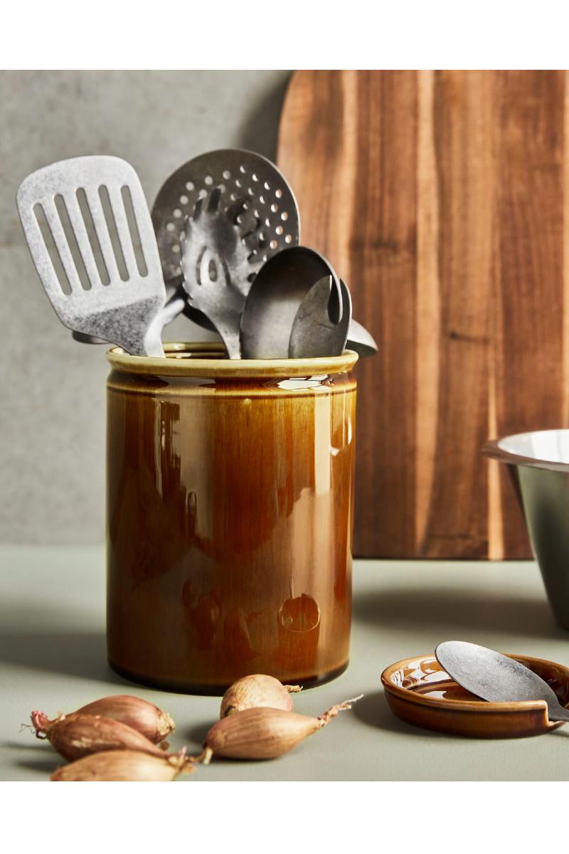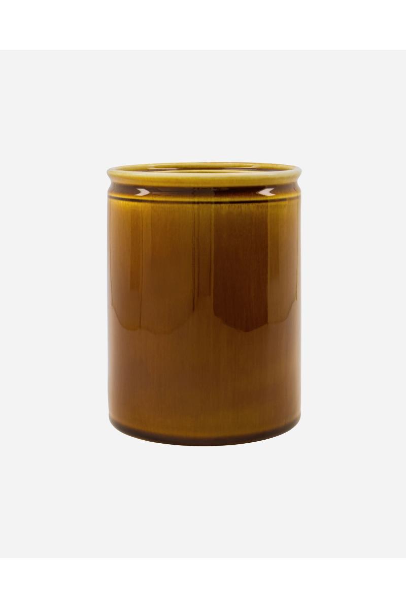 En stor krukke med en glatt, retro-inspirert glasur som gir et snev av varme til kjøkkenet ditt. Bruk den til å samle de mange kjøkkenredskapene dine ved komfyren eller til å oppbevare kaffekapsler – hva som helst, som ikke krever et lokk. Liker du friske urter? Bruk krukken som urtepotte til basilikum eller timian og sett den i vinduskarmen. Uansett om du setter den sammen med andre mørke farger eller lar den skille seg ut blant lysere toner, vil denne krukken fra Nicolas Vahé sette prikken over i’en.