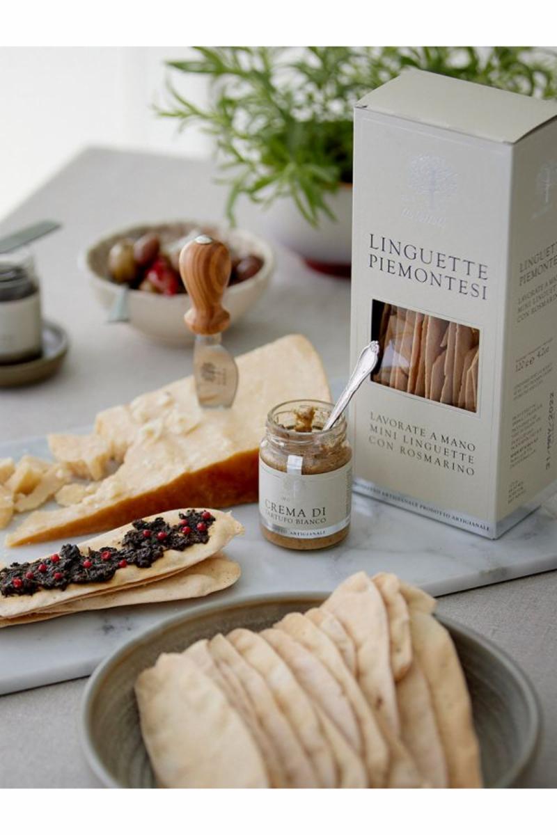 I Italia spiser man ikke kun linguette til antipasti, men også som erstatning for brød til supper eller salater. Vi anbefaler dem sammen med våre trøffelkremer og som tilbehør til parmesan.