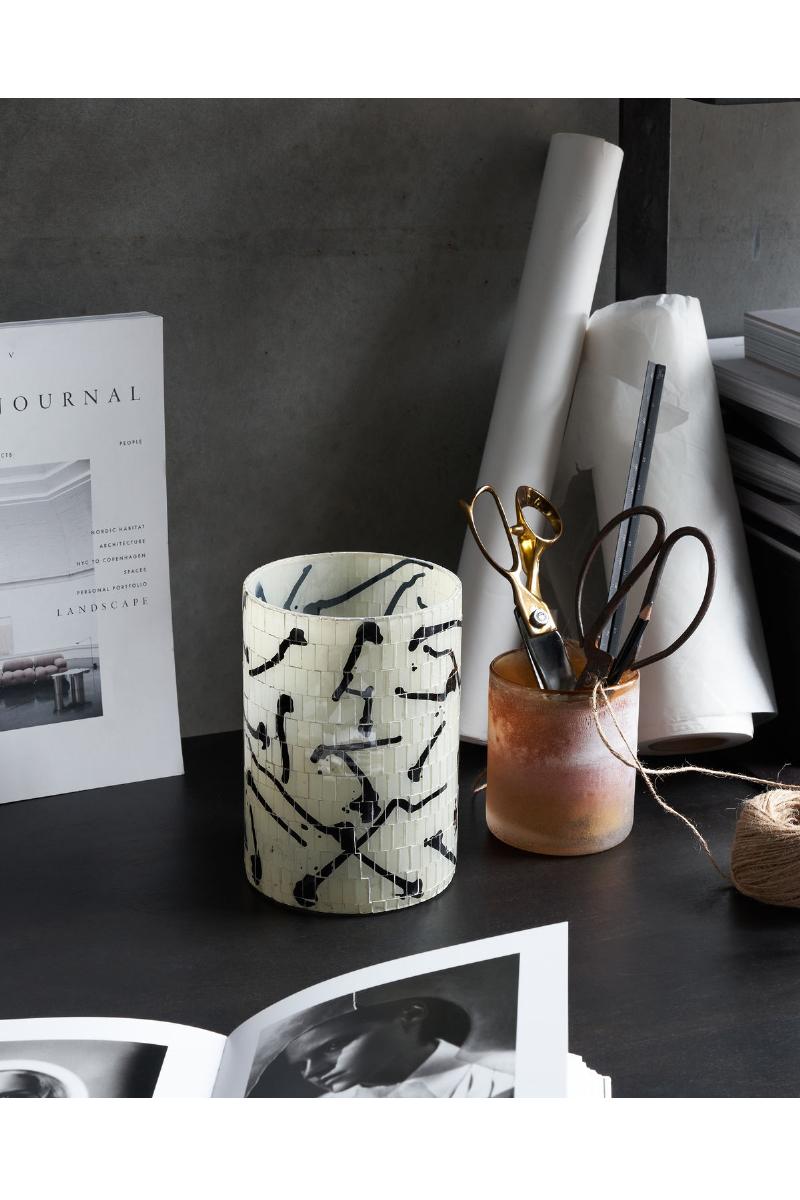 Vana fra House Doctor er en stor telysholder med svart og hvitt mønster laget av mosaikk. Håndlaget og med en virkelig flott design skaper den kontrast til andre materialer i hjemmet. Kombiner telysholderen med minimalistisk pynt så det fantastiske mosaikkmønsteret skiller seg ut, eller miks med høye lysestaker i metall for et fint arrangement på salongbordet eller spisebordet. Et moderne design som garantert vil skape atmosfære i stuen din.