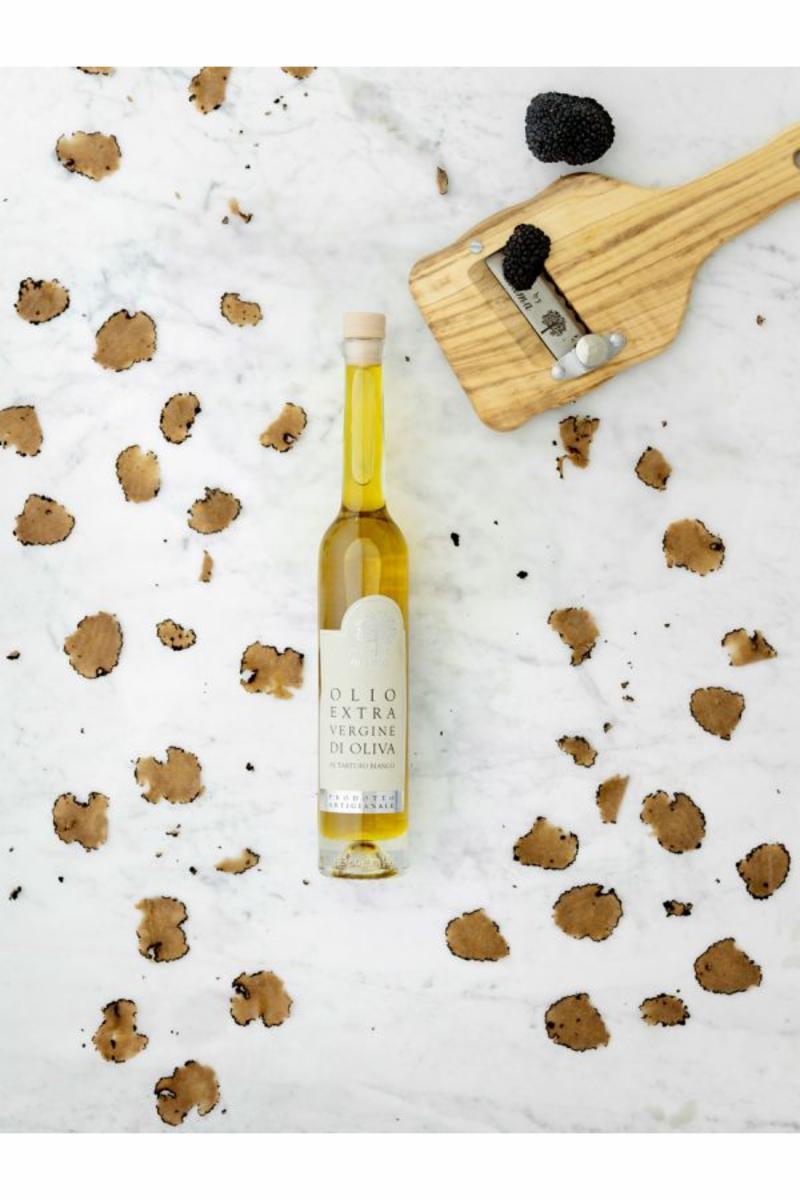 Trøffeloljen passer perfekt i en pastarett, over en risotto, en omelett eller på en okse carpaccio.