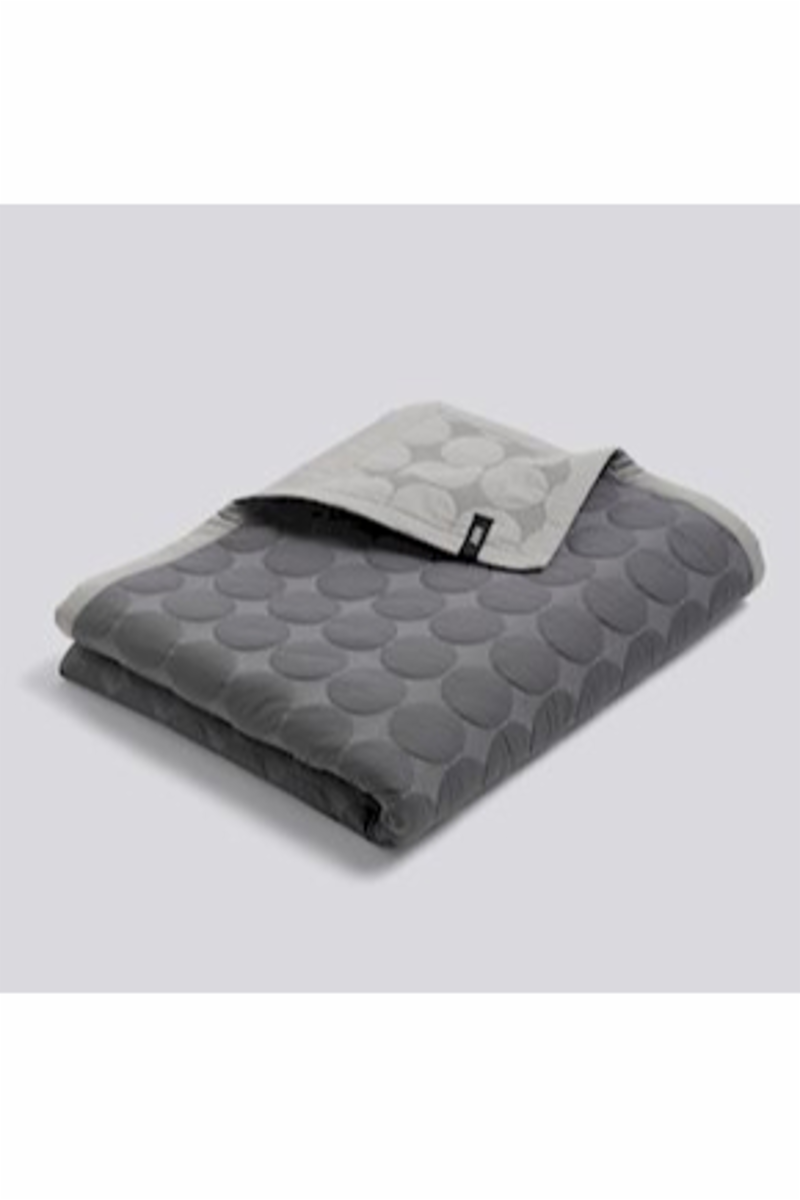 Vattert sengeteppe fra Hay. Mørk grå på den ene siden og lysere grå på den andre siden.