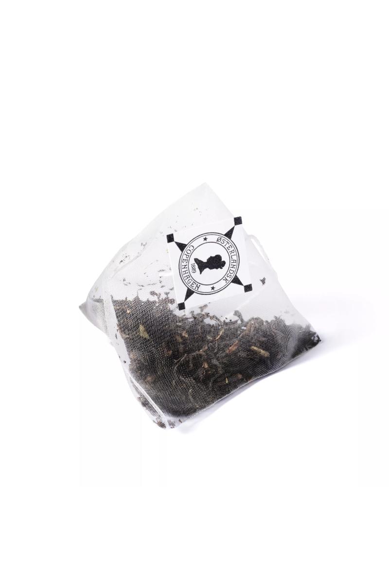 Ingredienser: Sort te, roseblader, hyldebær, solbær, bringebær, bringebærblader, fersken