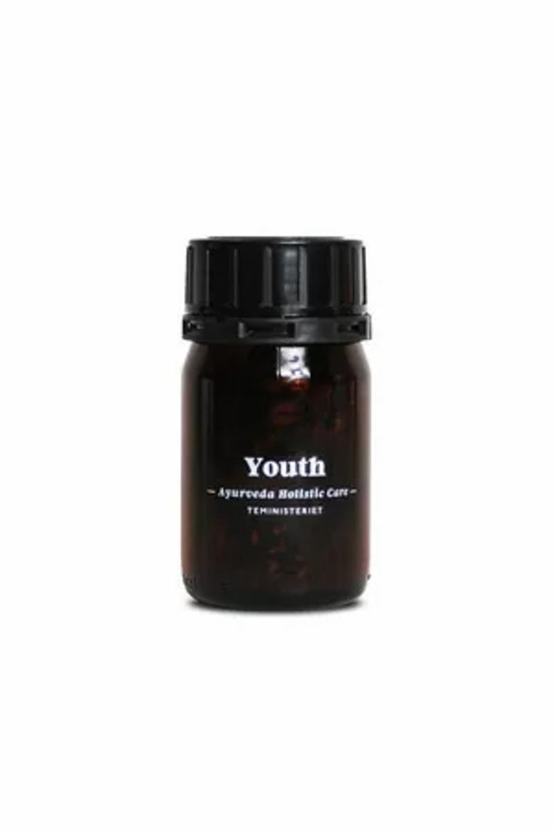 TEMINISTERIET Ayurveda Youth er en unik te som hjelper deg med å vedlikeholde ditt ungdommelige utseende. Teen inneholder nesle blader, lakrisrot, bjørnebær blader, eple, nype skall, havtorn, rødbeter, persille, ingefær, roseblader, linde blomst, rosmarin og naturlig aroma. Ingrediensene kan med sine unike egenskaper være med på å forebygge for tidlig alderstegn og øke hudens elastisitet. Teen er dessuten rik på vitamin A og C som hjelper med å produsere nye hudceller, så du får en mer glatt og jevn hud.