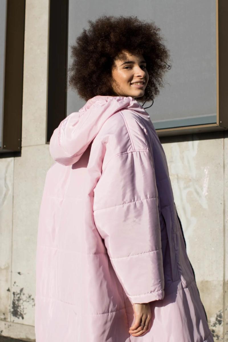 Er ment å brukes utenpå ytterjakke når det er kjøligere, derfor åpne lommer på sidene som gjør at man lett kommer til lommer i jakken under, eller til vesken.