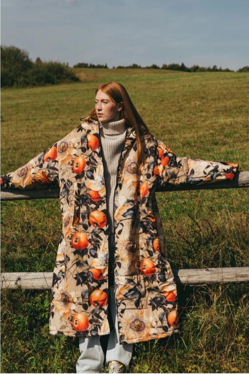 Er ment å brukes utenpå ytterjakke når det er kjøligere, derfor åpne lommer på sidene som gjør at man lett kommer til lommer i jakken under, eller til vesken.