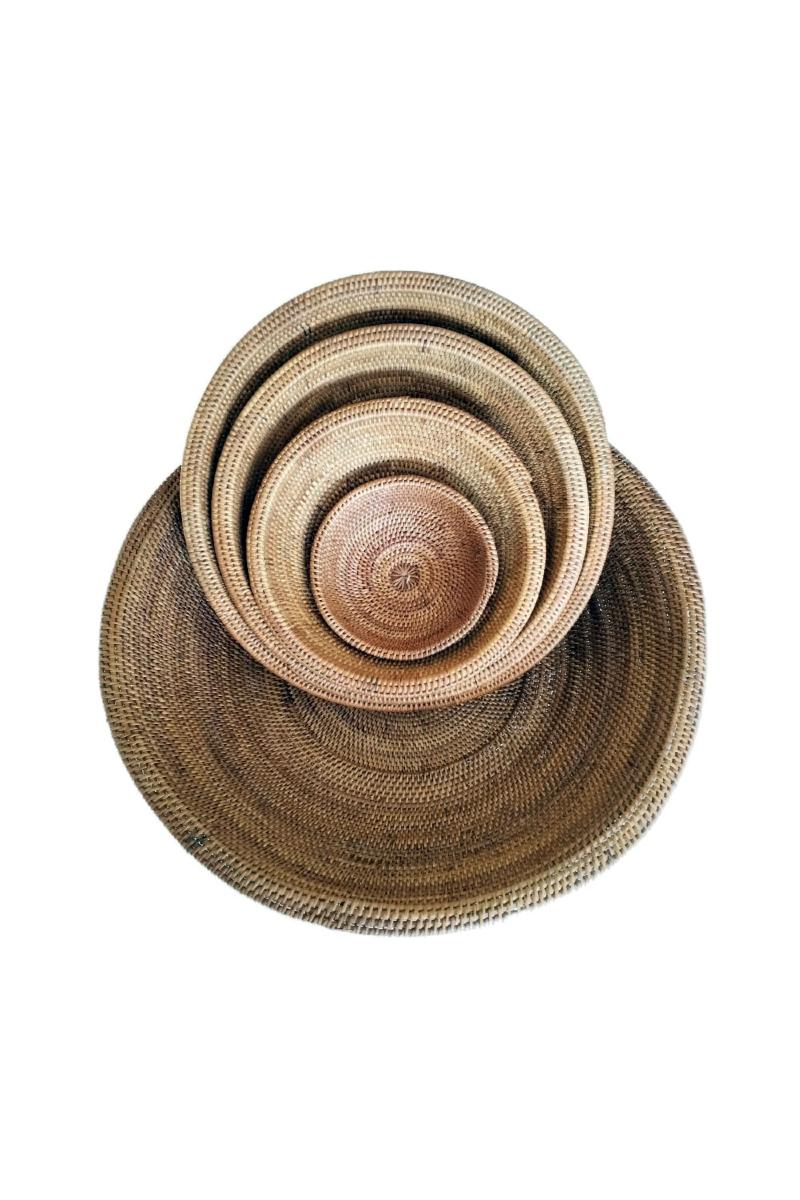Kurv fra Bali med gode bruksegenskaper og vakker patina. Stråene splittes før gjenstanden flettes for hånd. Deretter blir kurven soltørket og røykbehandlet.