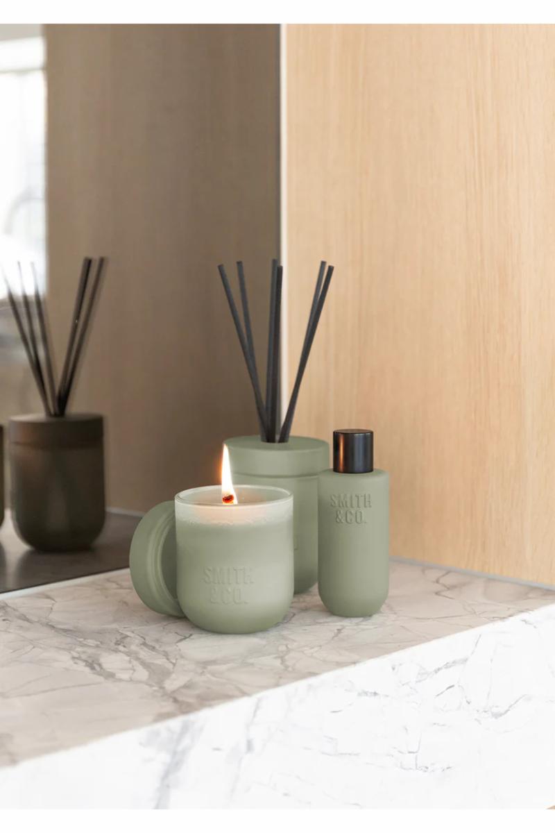Skogsbær, fresia og rav, med innslag av cedertre, mose og brent vanilje.